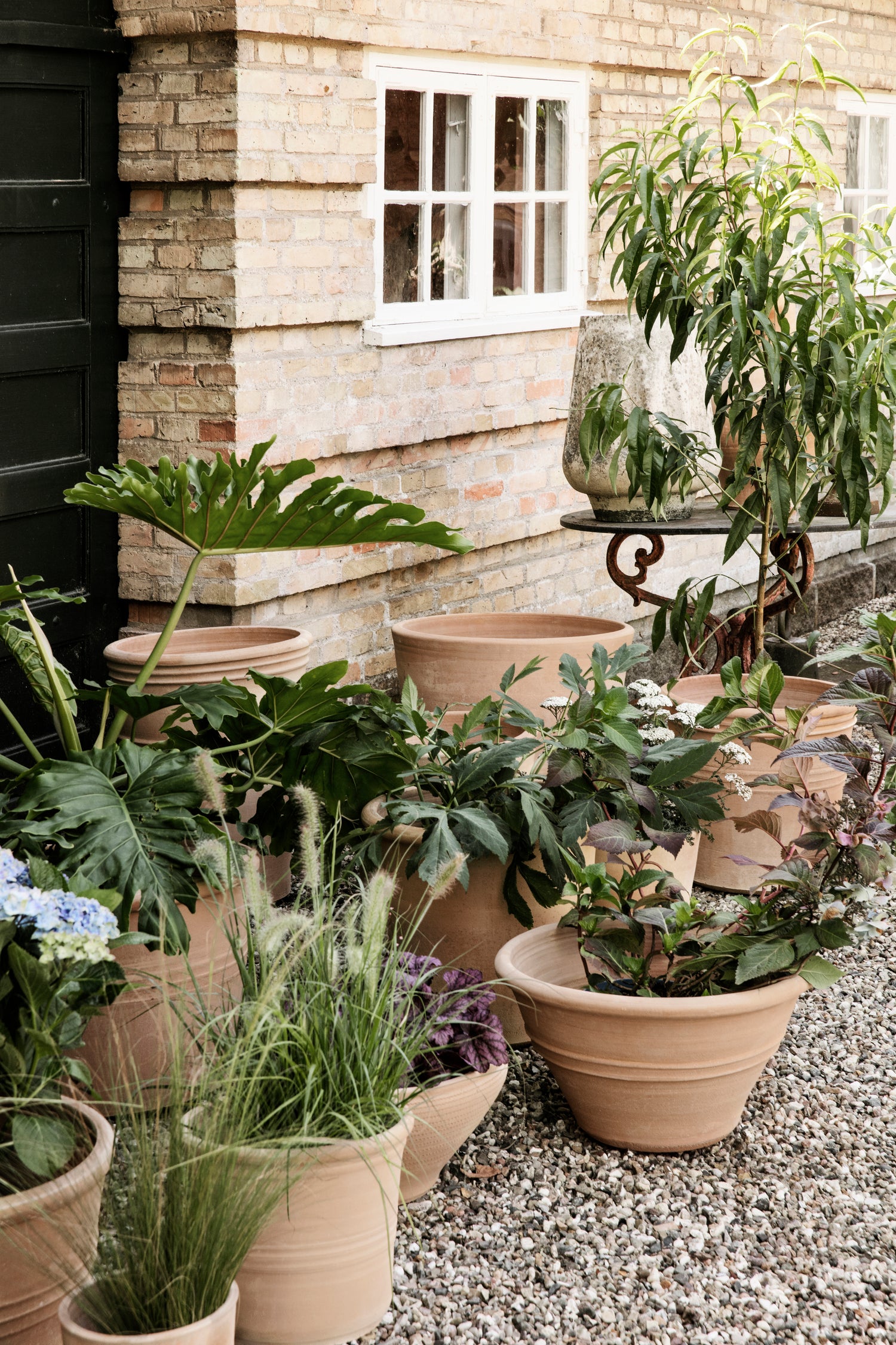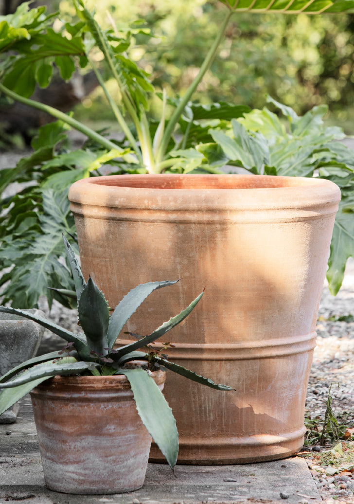 Krukkerne får med tiden patina. Denne proces fremskyndes, når krukkerne står under planter eller træer.