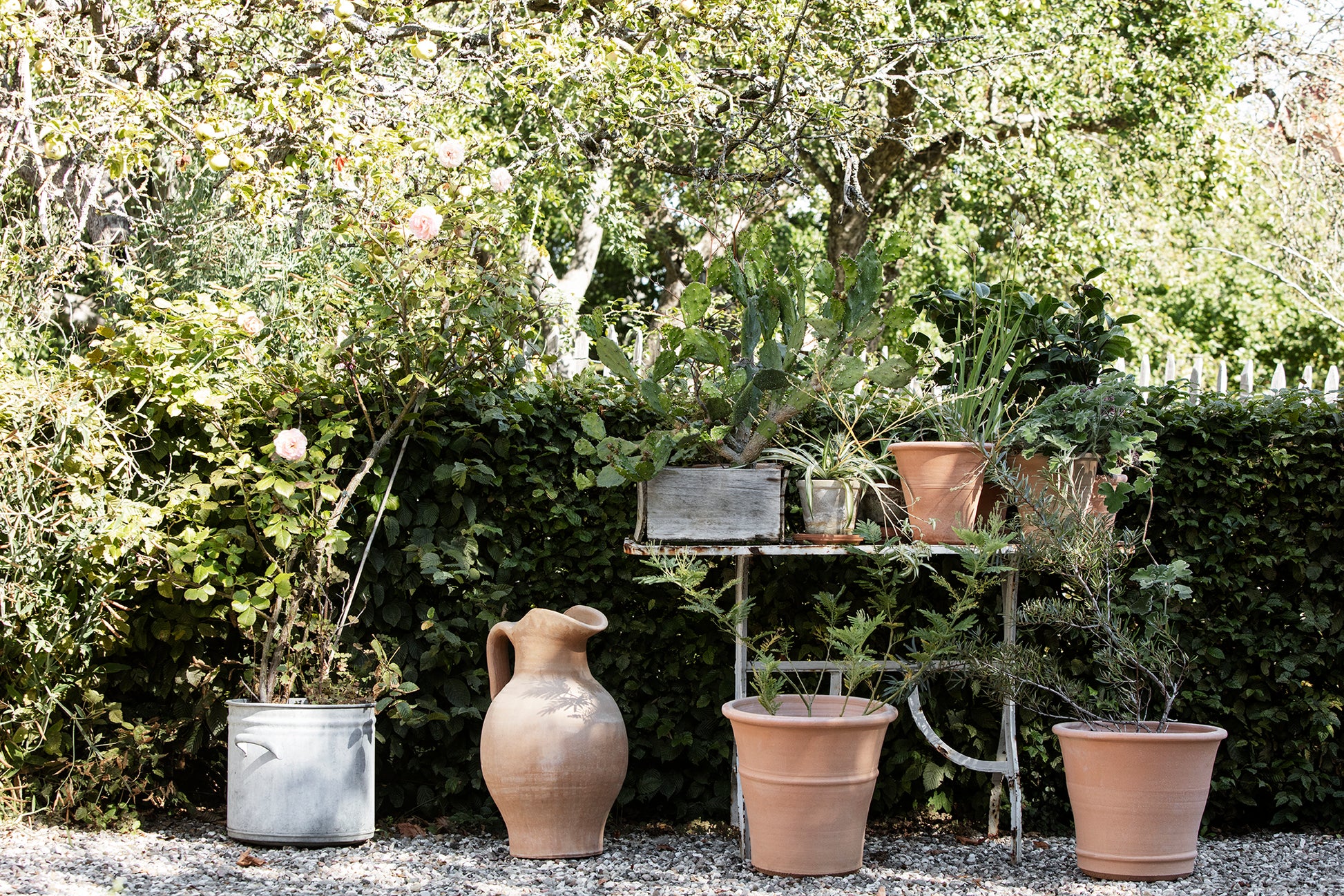 PERVOLA BETYDER HAVE PÅ GRÆSK. SMUK ENKEL PLANTEKRUKKE.